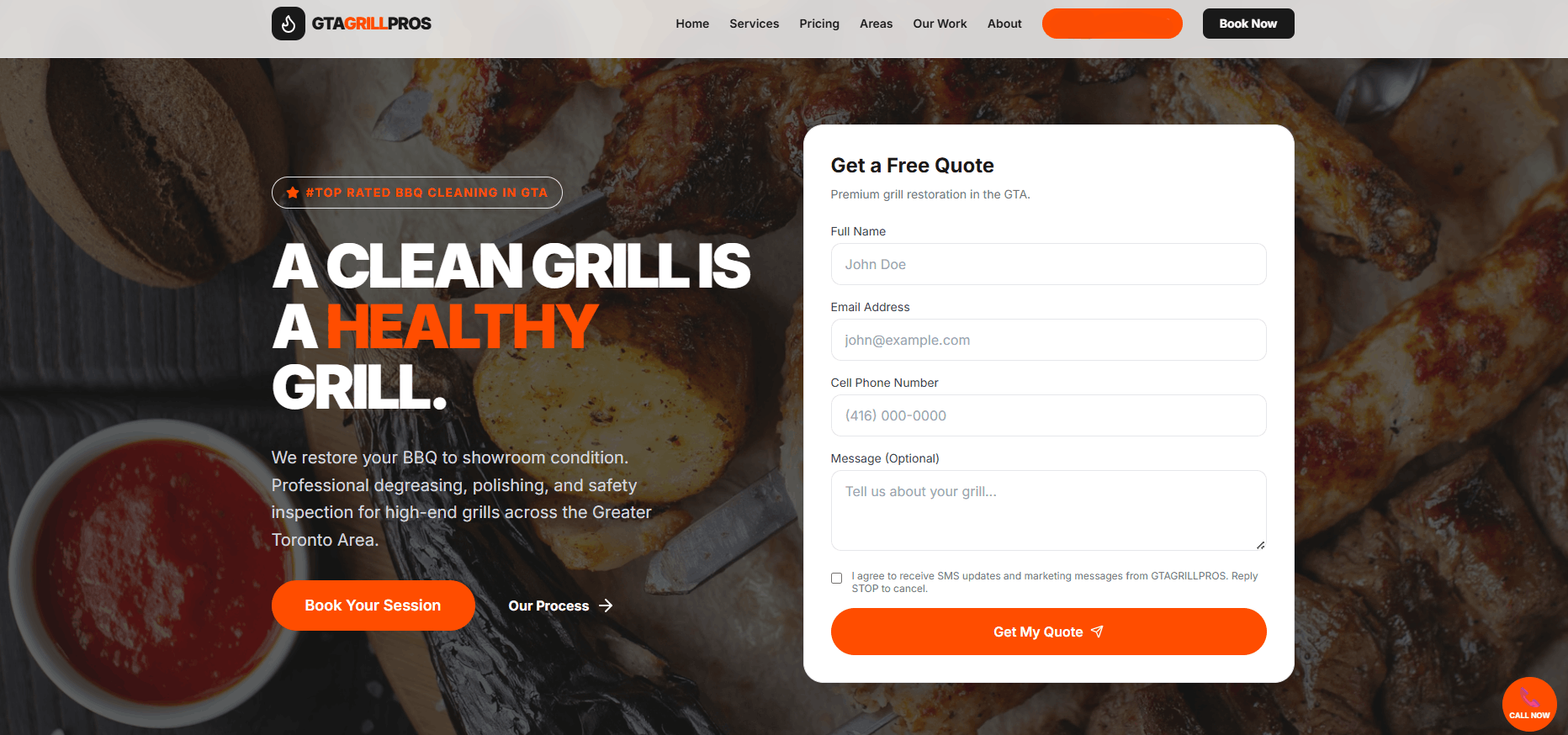 A premium service platform for a luxury grill cleaning business in the Greater Toronto Area.