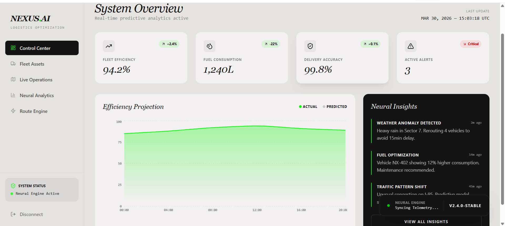 A sophisticated route optimization and fleet management system powered by real-time predictive analytics.